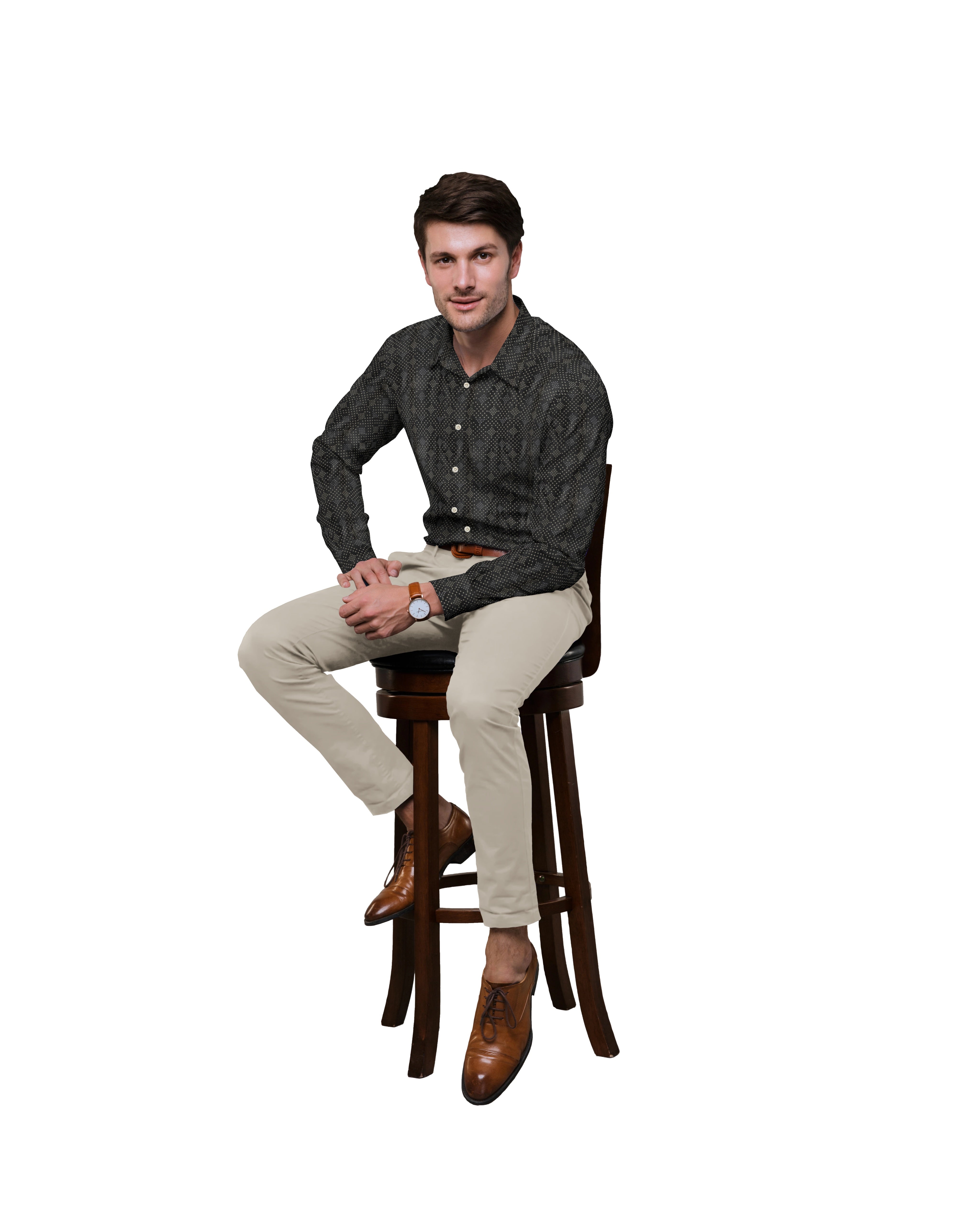 BLACK WITH WHITE & IVORY CROSS MARK PRINT COTTON SHIRT