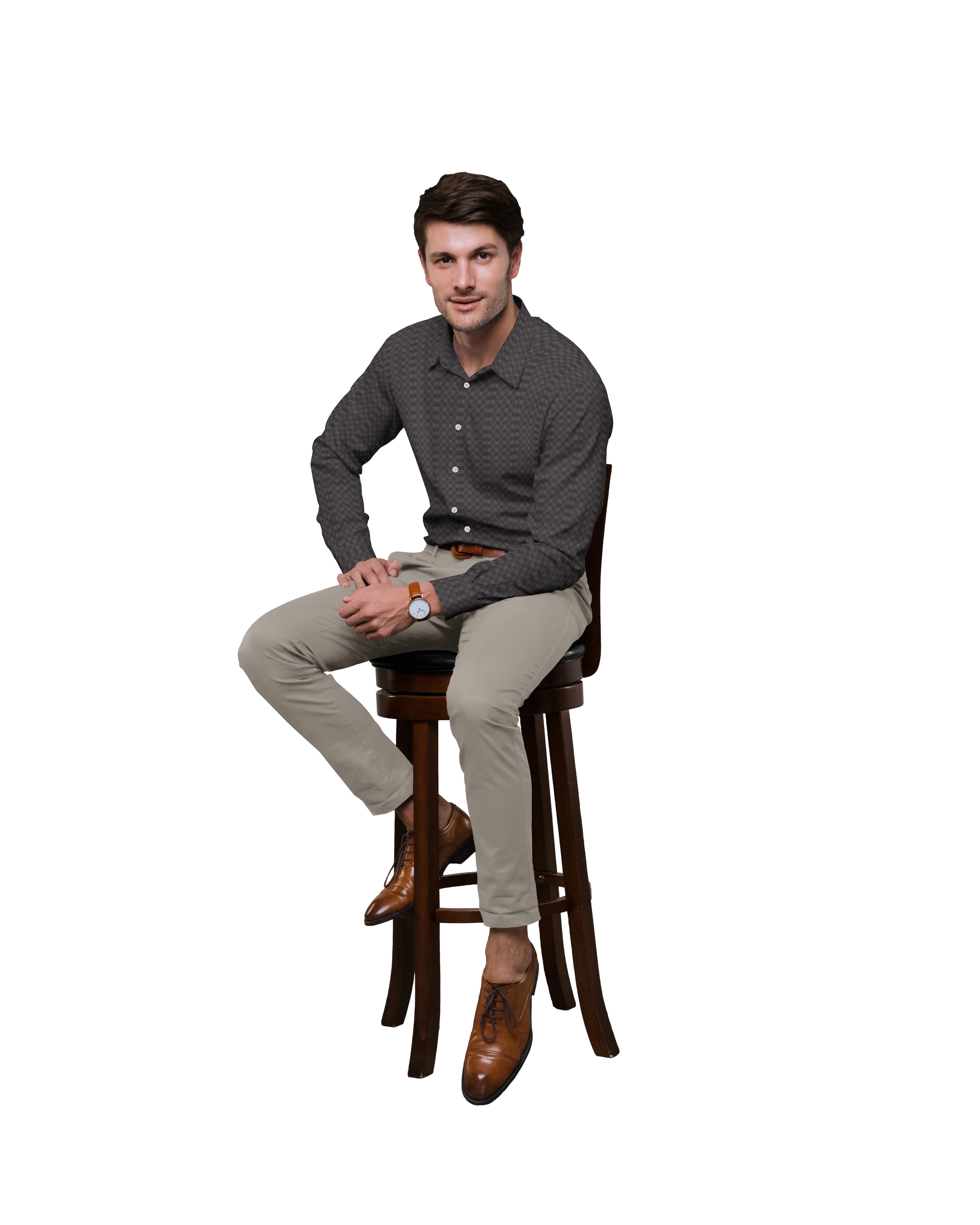 BLUE & BROWN DOT LINE SQUARE PRINT COTTON SHIRT