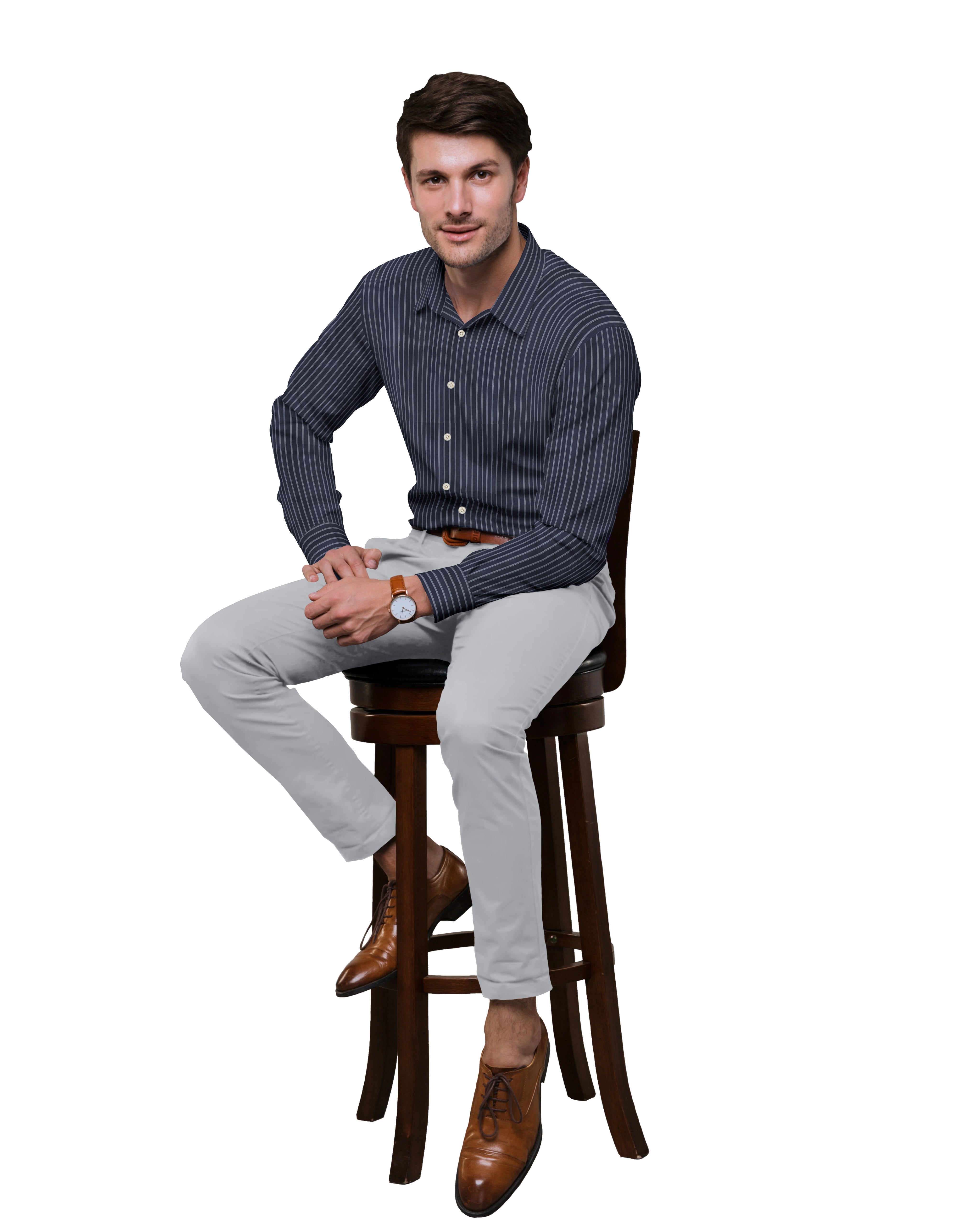 BLUE WITH SILVER THIN LINE COTTON SHIRT