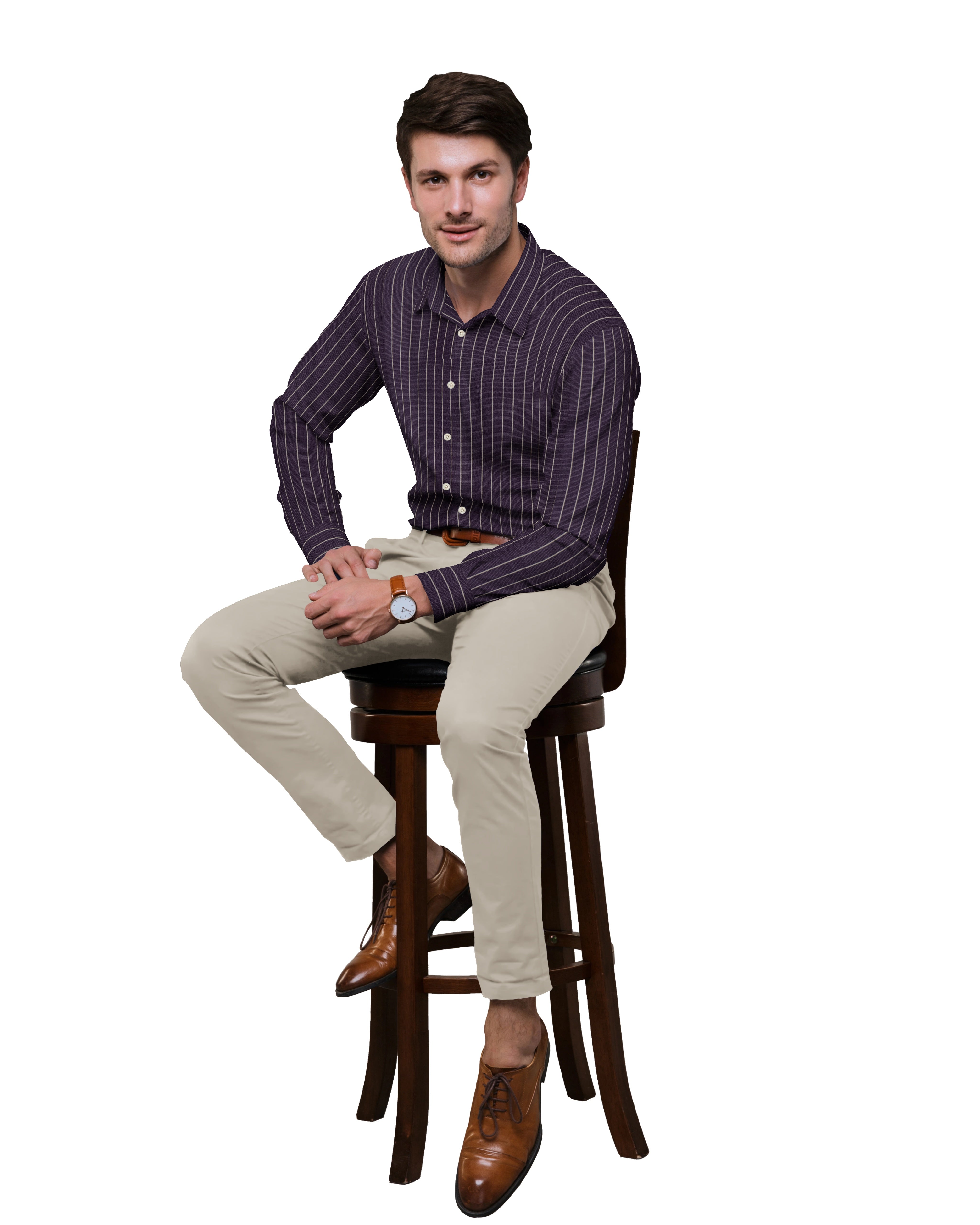BURN DARK VIOLET WITH IVORY THIN LINE COTTON SHIRT