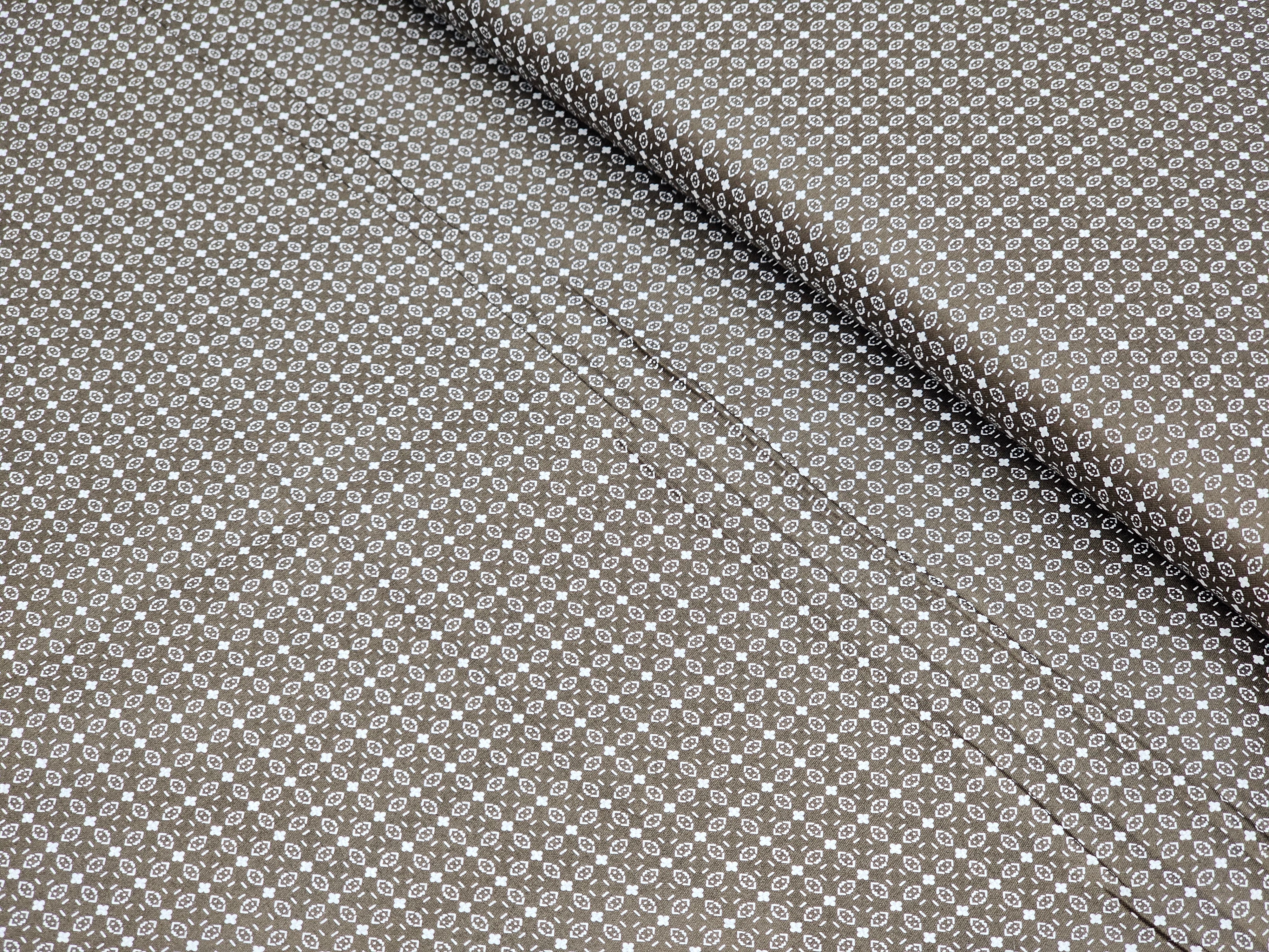 COFFEE BROWN MINI CHECKS SATIN PRINT PRIMIUM MIX COTTON SHIRT FABRIC.