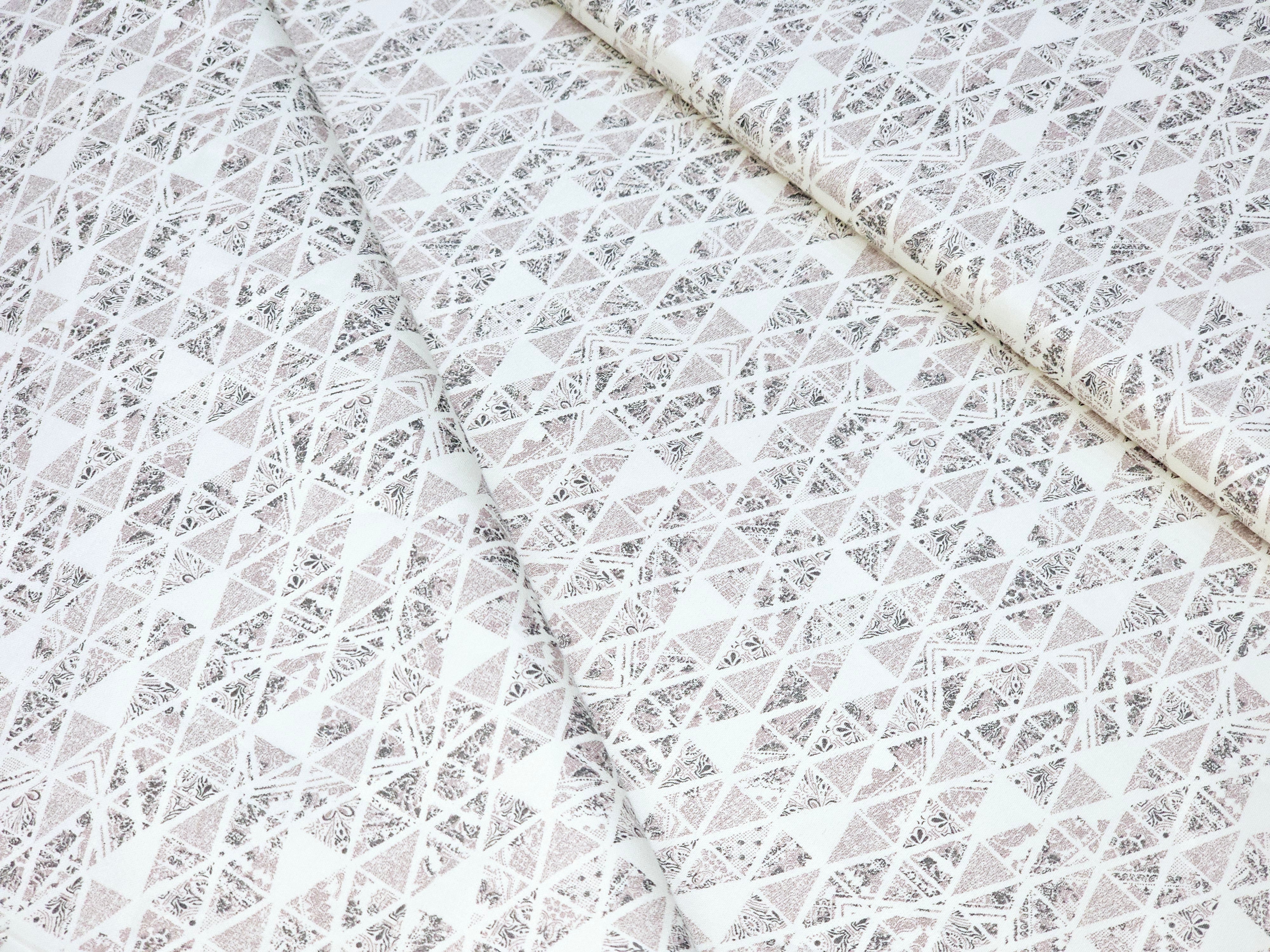 BLACK IVORY AND WHITE TRIANGLE DESIGNER TEXTURED PRINT PRIMIUM MIX COTTON SHIRT FABRIC.
