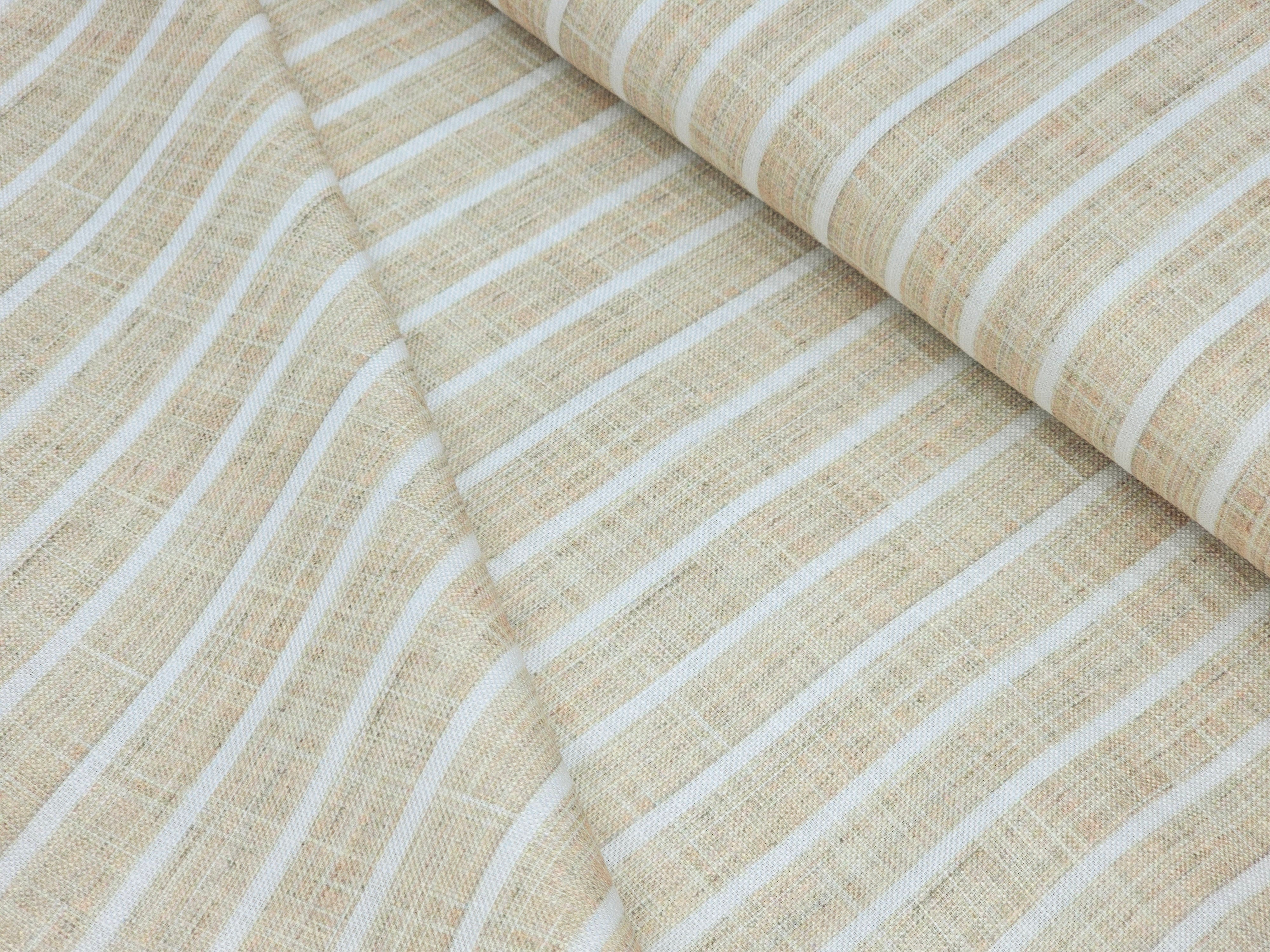 WOODEN IVORY WITH WHITE THIN STRIPS PREMIUM MIX LINEN SHIRT FABRIC.