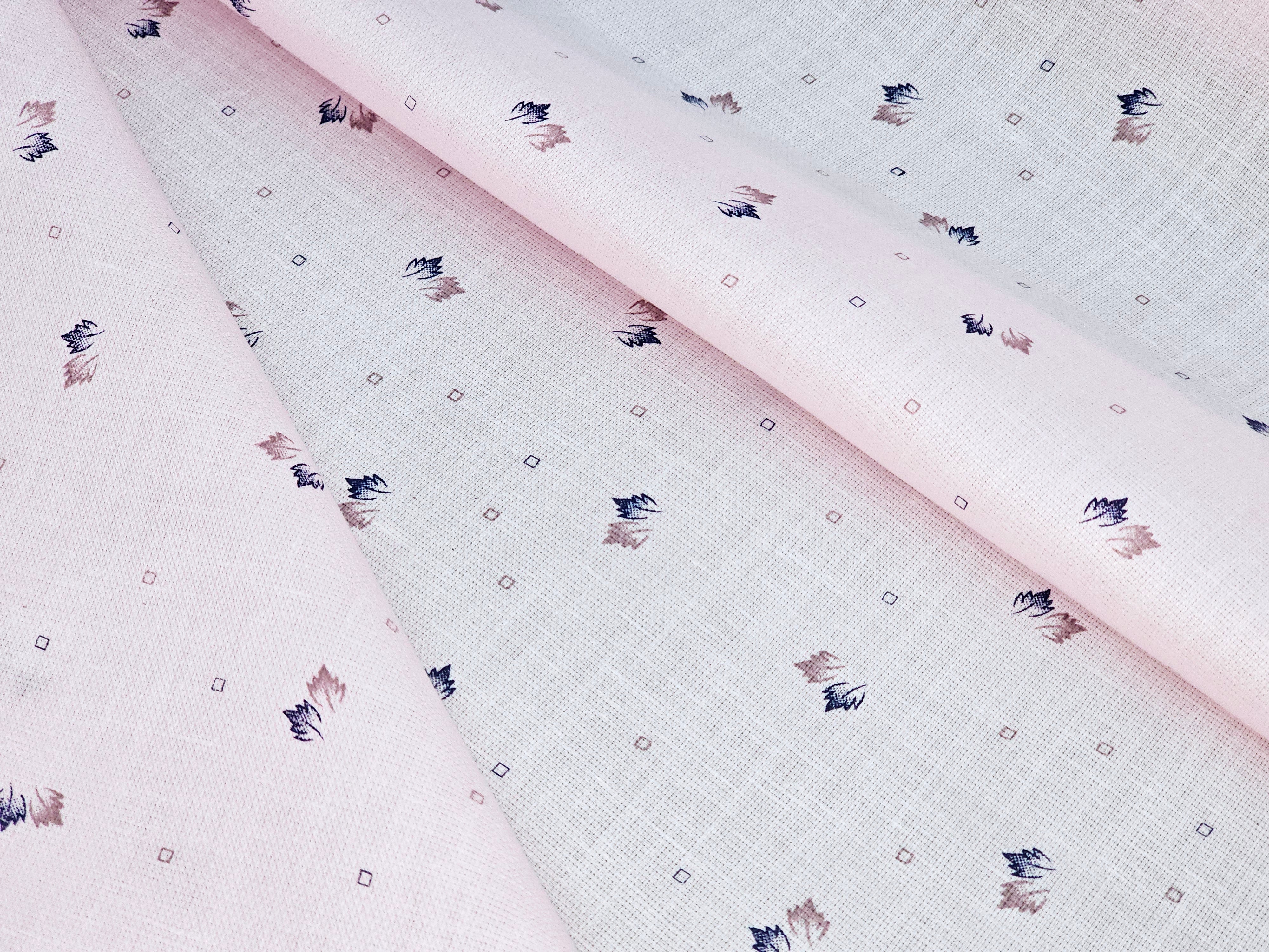 LIGHT ROSY PINK LEAF PRINTED PREMIUM MIX LINEN SHIRT FABRIC.
